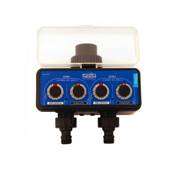 Este programador permite usarlo para dos zonas de riego usando un solo grifo.